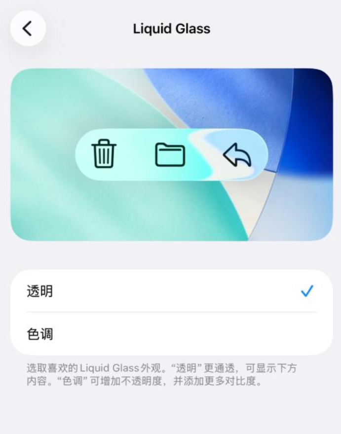 终于不用再忍受那个"看不清文字"的透明界面了!现在可以在"透明"和"色调"两种模式间切换:透明模式保持iOS26那种通透的玻璃质感,色调模式则增加了不透明度和对比度。