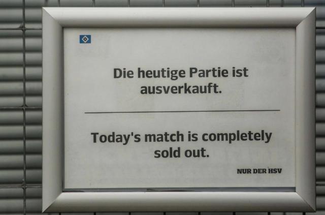 汉堡队球场前告示牌:今天比赛门票已售罄。