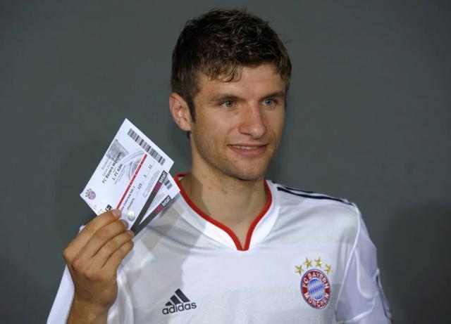2010/11赛季德甲开始前,托马斯·穆勒在活动中推销拜仁慕尼黑的季票。