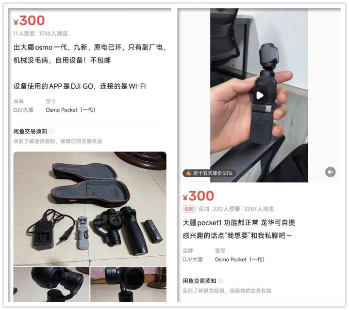 当年大疆Pocket1首发价是2499元,如今二手只剩零头,我找到最低价是300元在线网上配资平台,一个换了副电,一个只限自取。而大多数常见均价是400-500元,有500元预算都可以买到全套充新机了,这玩意对普通人来说也是“吃灰神器”。
