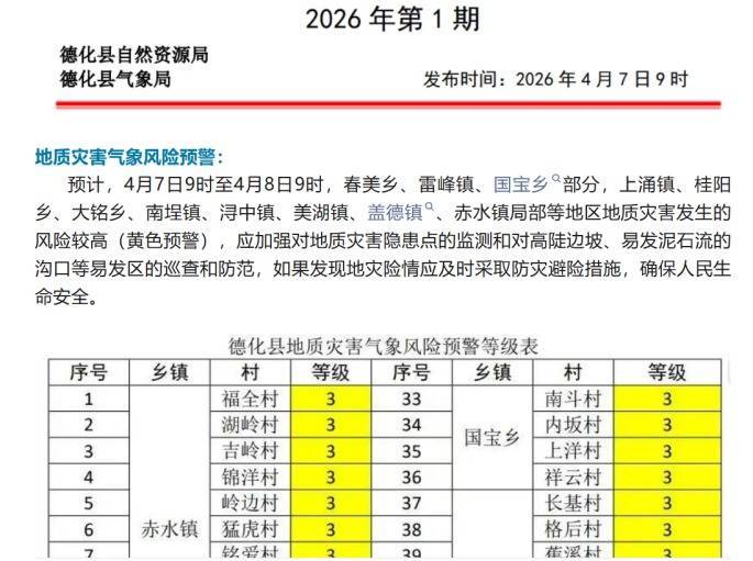 海报新闻记者(报料微信:HaibaoNewsSw)注意到,4月7日,泉州气象部门再次通报,当日07:30至09:30,南安、惠安、安溪等3个县(市)4个乡镇2小时降水超过30毫米。